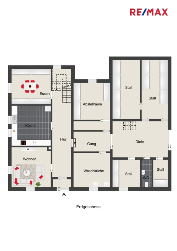 Aufgeteilt auf ca. 224 m² Wohnfläche verfügt diese Immobilie über eine großzügige Wohneinheit mit angrenzender Stallung.