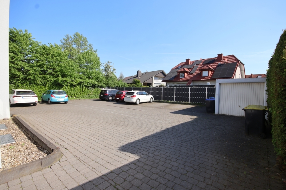 Auf dem Grundstück steht für jede Wohnpartei jeweils ein PKW-Stellplatz zur Verfügung. Eine zusätzliche Garage bietet Stellfläche für Gartengeräte und Mülltonnen.