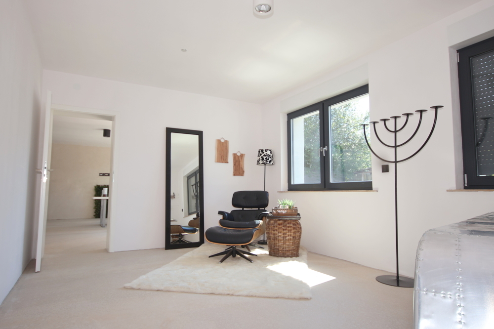 Bei dem Bauteil Nr. 1 handelt sich um einen ca. 122 m² Betriebsleiterwohnung, welcher im Jahr 1976 erbaut und im Jahr 2024 umfassend saniert wurde. Dieser unterteilt sich in ein helles Wohn- und Arbeitszimmer, ein Koch- und Essbereich, ein Schlafzimmer und ein modernes Badezimmer. Die Küche und das Schlafzimmer können bei Bedarf vom Käufer zu Büroräumen umgebaut werden.
