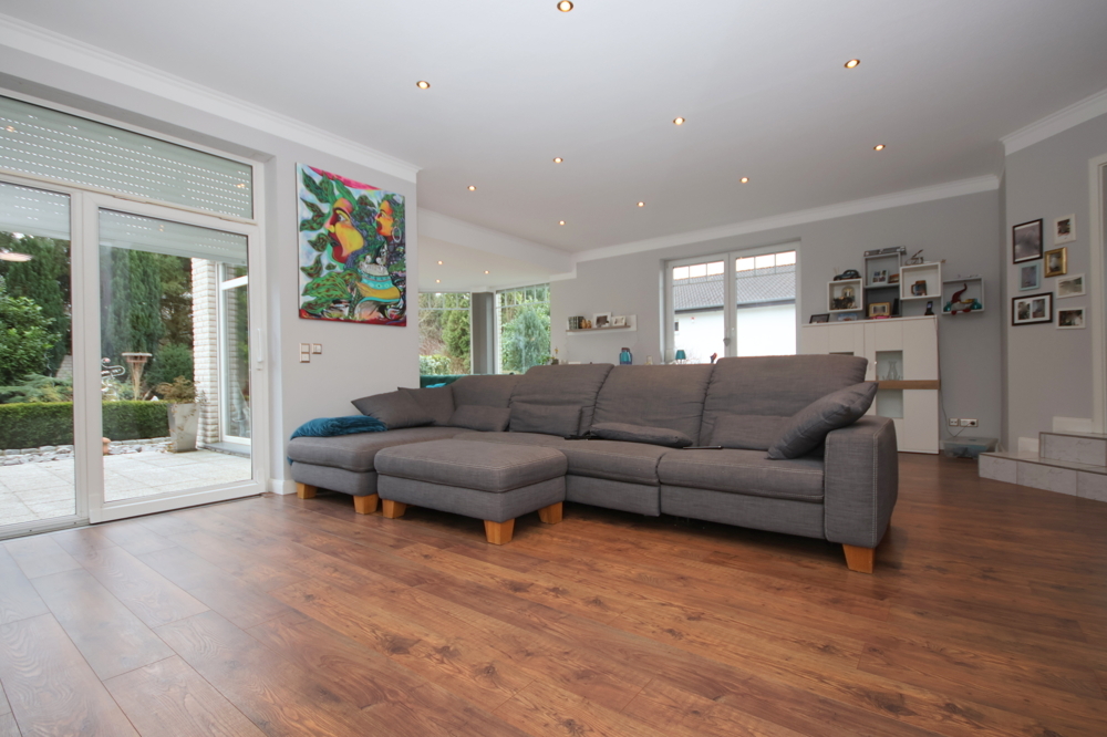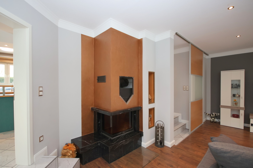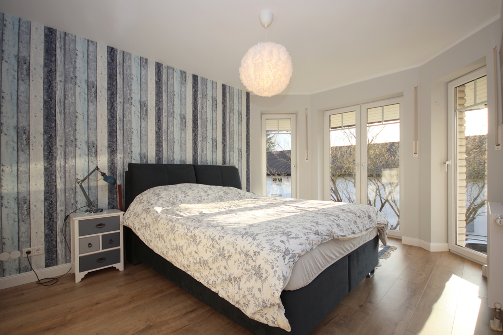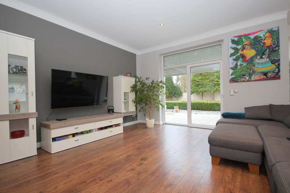 Das großzügige Einfamilienhaus beeindruckt durch seine moderne Architektur und hochwertige Ausstattung. Im Erdgeschoss erwarten Sie ein offener, lichtdurchfluteter Wohnbereich und eine großzügige Küche, die keine Wünsche offen lässt. Der Wohn- und Essbereich bildet das Herzstück des Hauses und bietet direkten Zugang zur Terrasse sowie zum gepflegten Garten – perfekt für gesellige Abende oder entspannte Stunden im Freien.