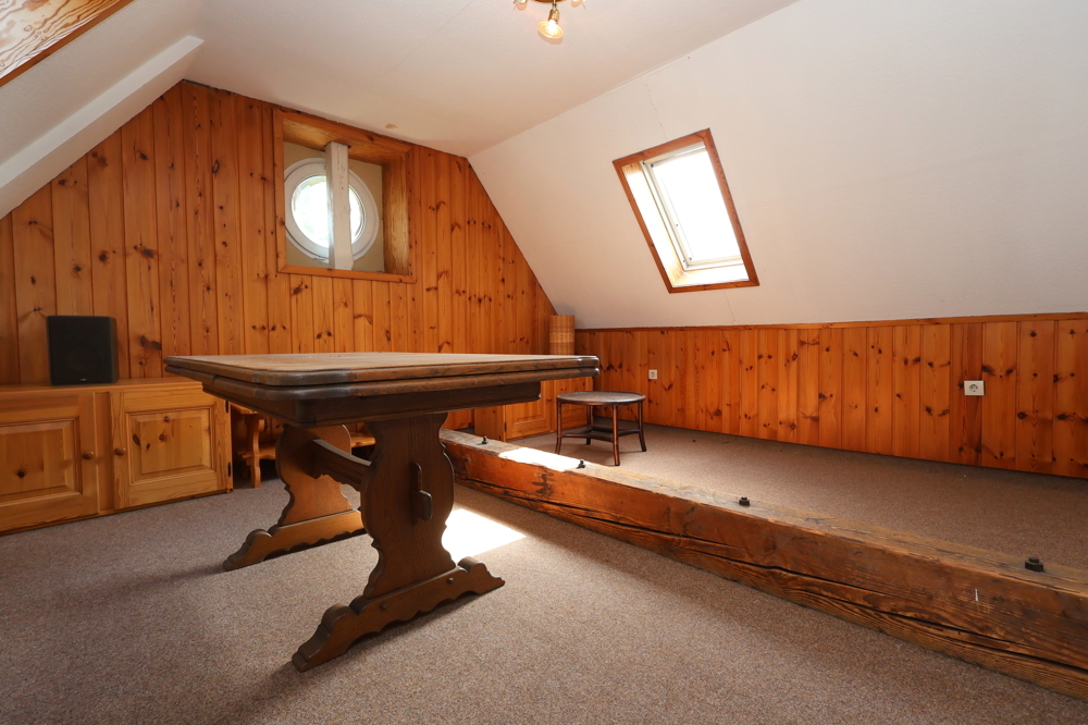 Das Dachgeschoss bietet weitere Nutzungsmöglichkeiten, z. B. als Gästebereich oder Homeoffice. Drei großzügige Räume und ein separates Duschbad schaffen zusätzliche Flexibilität.