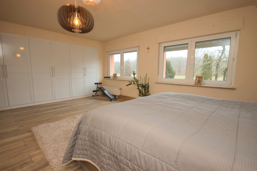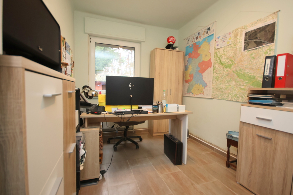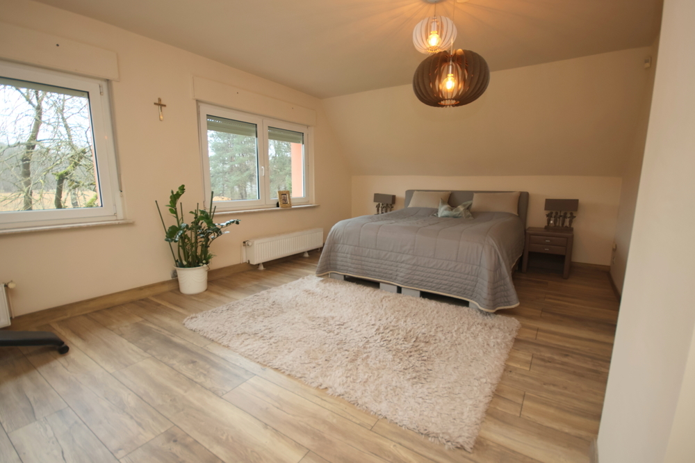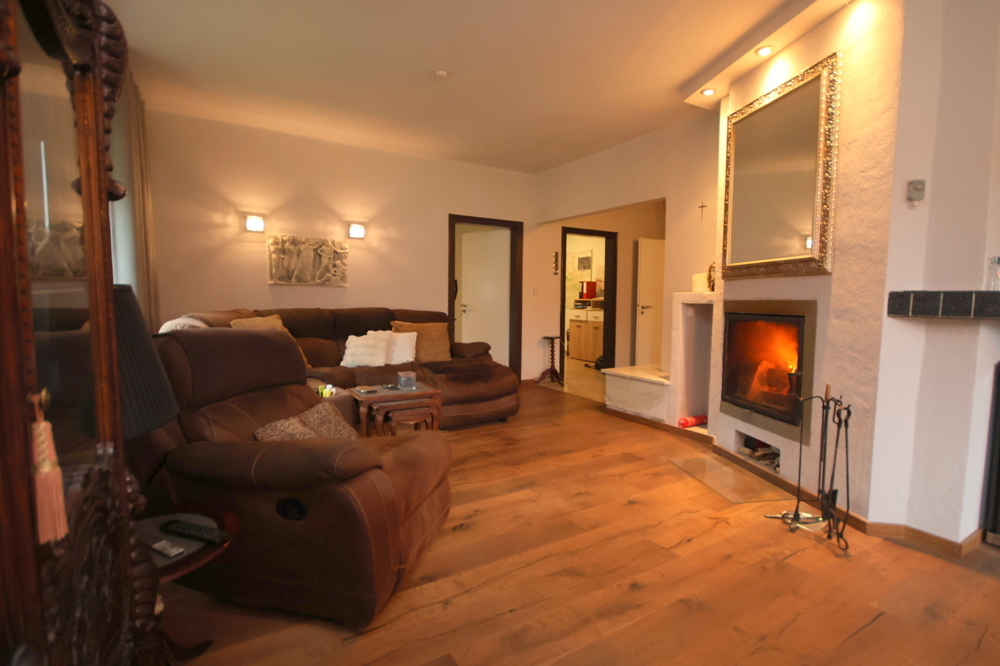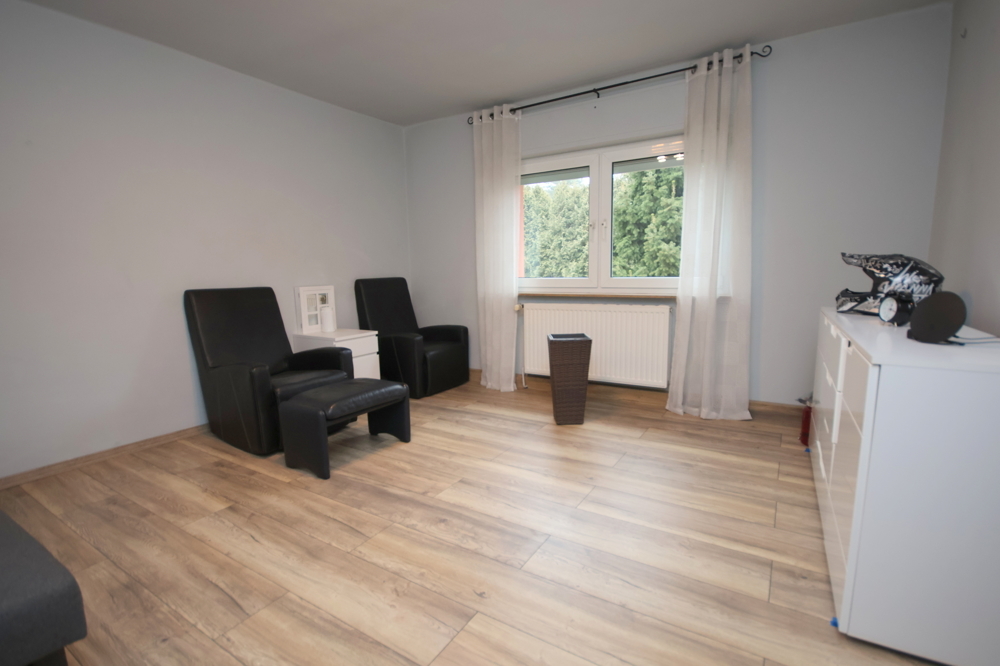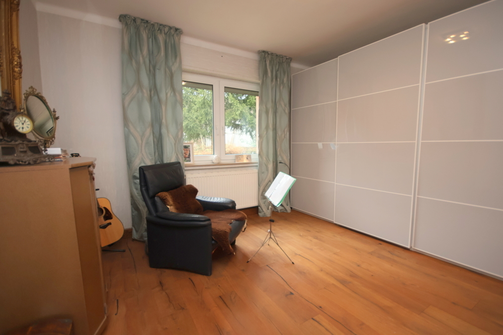 Die Wohnfläche von ca. 180 m² bietet viel Platz für die ganze Familie. Im Erdgeschoss erwartet Sie ein weitläufiges Wohn- und Esszimmer mit Kamin, das für eine gemütliche Atmosphäre sorgt. Zudem stehen ein Gästezimmer, ein Büro, eine Küche, ein Gäste-WC sowie eine separate Dusche zur Verfügung. Falls zusätzlicher Wohnraum benötigt wird, kann die Fläche auf dieser Etage erweitert werden.