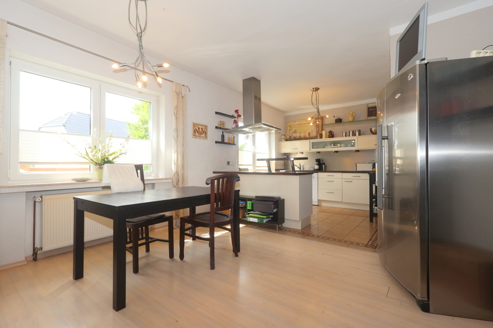 Dieses stilvolle Einfamilienhaus aus dem Jahr 1906 verbindet historischen Charme mit modernem Wohnkomfort. Errichtet auf einem soliden Bruchsteinsockel, präsentiert es sich heute als einladendes Zuhause mit ca. 230 m² Wohnfläche auf zwei Etagen und großzügigen, lichtdurchfluteten Räumen.Im Erdgeschoss empfängt Sie eine großzügige Diele, die in die verschiedenen Bereiche führt. Das Herzstück bildet die offene Wohnküche, die als Treffpunkt für Familie und Freunde zum Kochen, Genießen und Verweilen einlädt. Ein Elternschlafzimmer sowie zwei Kinderzimmer bieten ausreichend Platz für die ganze Familie. Ergänzt wird das Raumangebot durch ein großes Badezimmer mit Badewanne, Dusche und WC sowie ein zusätzliches Gäste-WC. Das weitläufige Wohnzimmer mit Kamin sorgt für gemütliche Stunden und öffnet sich zur teilüberdachten Terrasse
