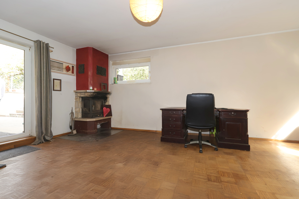 Das Obergeschoss bietet ein weiteres Wohnzimmer mit Zugang zu einem Balkon, der einen schönen Blick in den Garten ermöglicht. Ein Schlafzimmer, die Galerie und ein Büro ergänzen das Raumangebot.