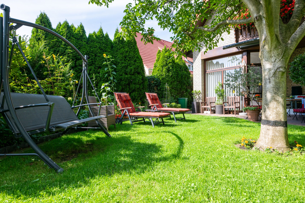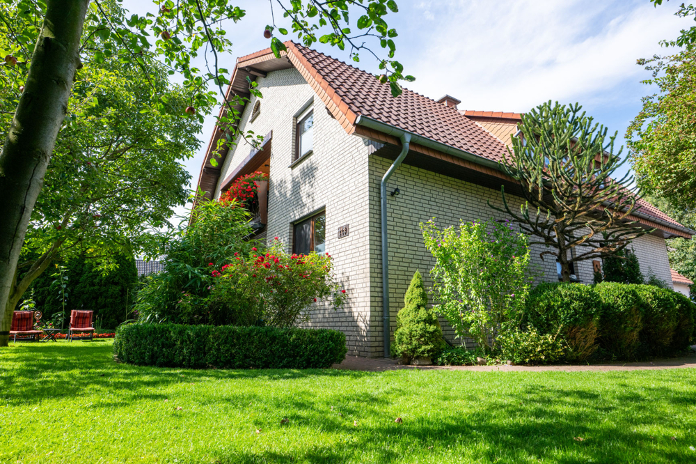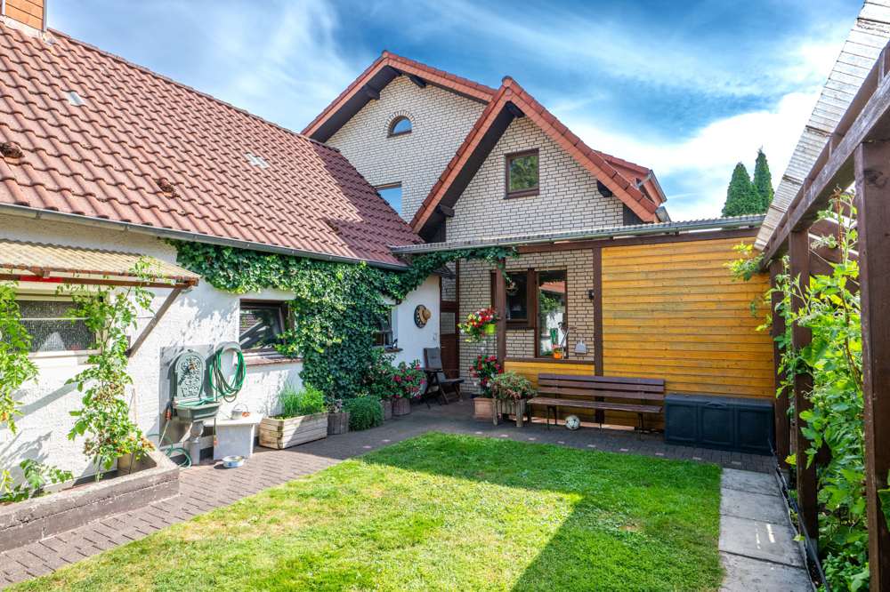 Der Außenbereich ist ein echtes Highlight. Der gepflegte Garten lädt zum Entspannen ein und bietet Kindern viel Platz zum Spielen. Die Terrasse ist ideal für gesellige Abende mit Familie und Freunden.