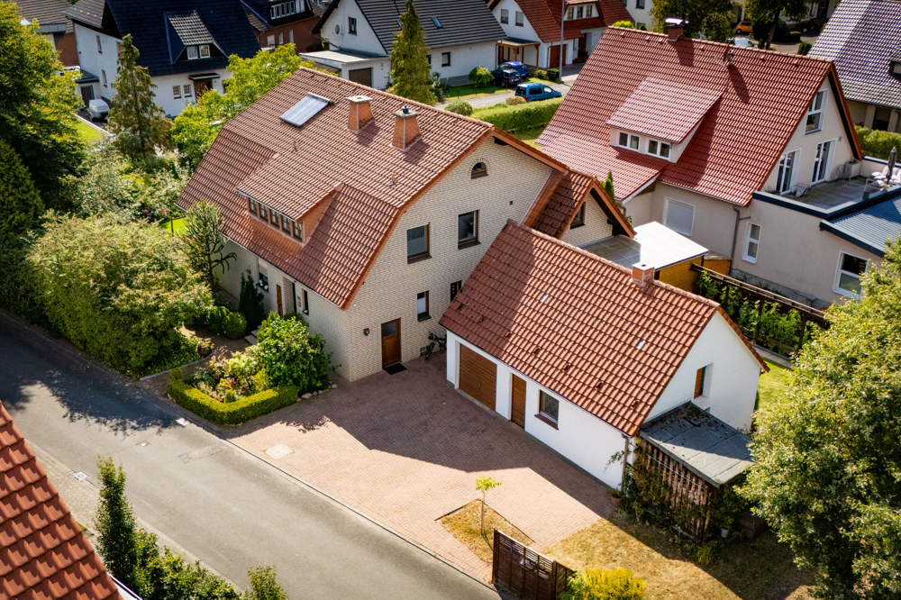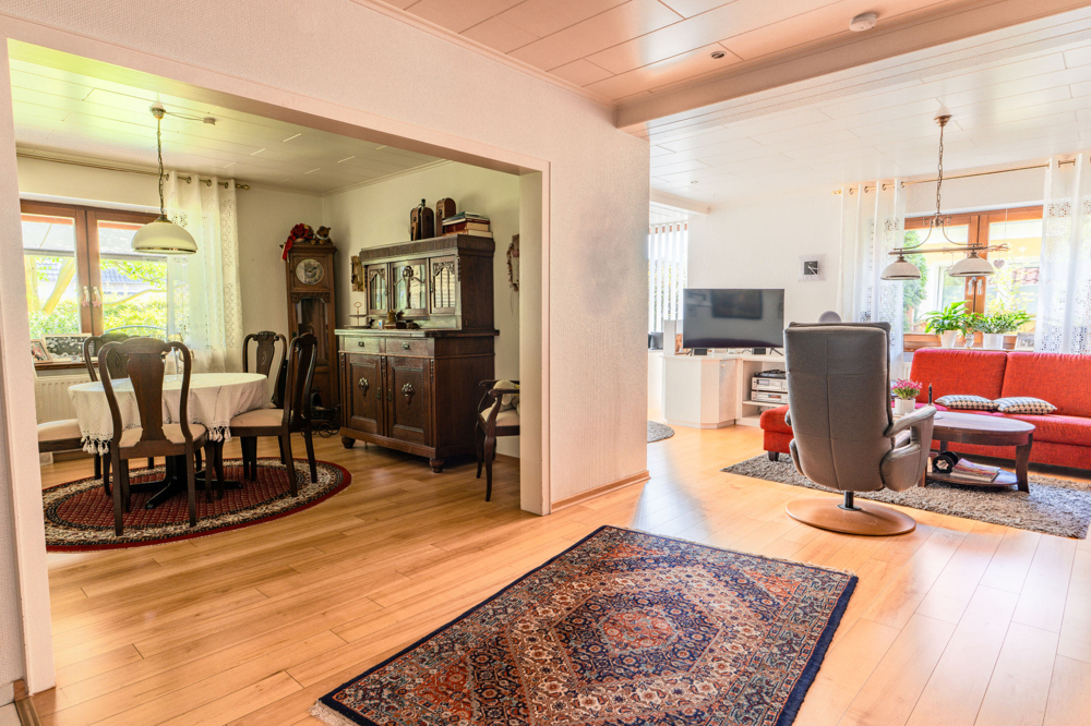Dieses charmante Zweifamilienhaus bietet auf 210 m² Wohnfläche und einem großzügigen Grundstück von 840 m² viel Platz für individuelle Gestaltungsmöglichkeiten. Mit insgesamt sieben Zimmern eignet sich die 1959 erbaute und 1989 umgebaute sowie erweiterte Immobilie ideal für Familien, die Wert auf Platz und Komfort legen. Der nachträglich ausgebaute Dachboden zählt nicht zur offiziellen Wohnflächenberechnung, bietet aber zusätzliche Nutzfläche.