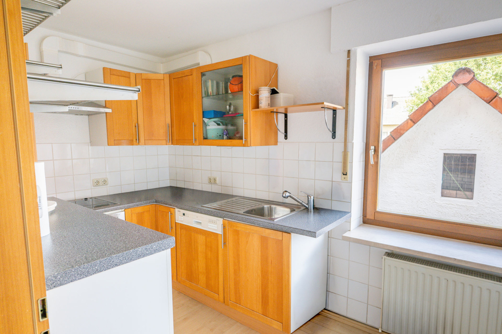 Die Immobilie besticht durch helle, großzügige Räume und eine einladende Atmosphäre. Der Wohnbereich ist offen gestaltet und bietet viel Platz für gemeinsame Stunden. Die großen Fenster lassen viel Licht herein und bieten einen schönen Blick ins Grüne. Die Küche ist funktional und bietet ausreichend Platz für kulinarische Entfaltung.