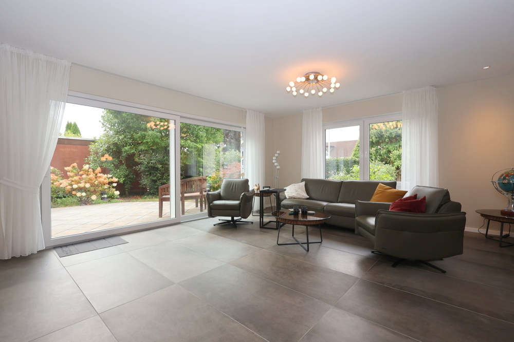 Großzügiger Wohn-/Essbereich mit direktem Zugang zur Terrasse und Garten