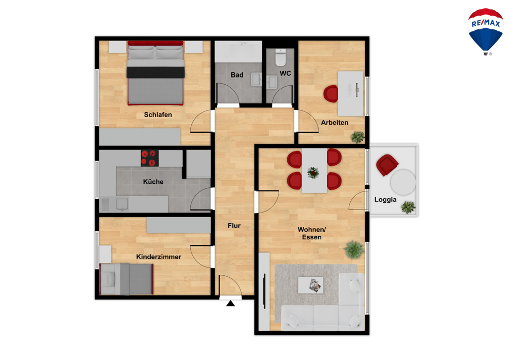 Alle Räume erstrahlen freundlich und hell, abgerundet wird das Raumprogramm durch einen Balkon, der vom Wohn- Esszimmer aus begehbar ist und einen herrlichen Ausblick verspricht.