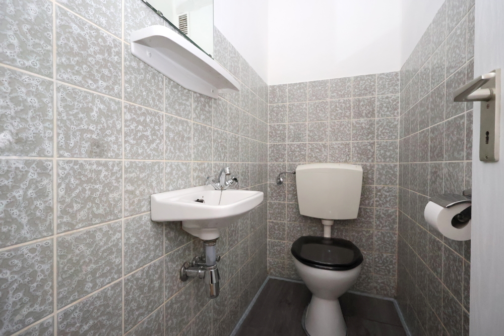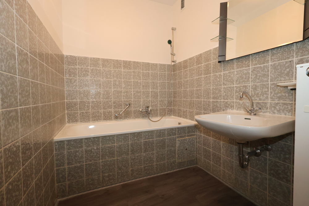 Das Badezimmer ist ausgestattet mit einer Duschwanne und einen Waschtisch. Angrenzend finden Sie ein separates WC.
