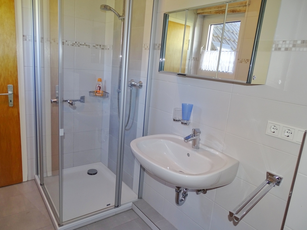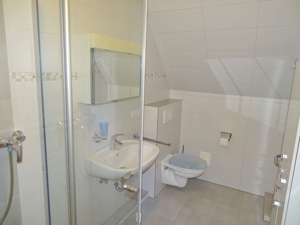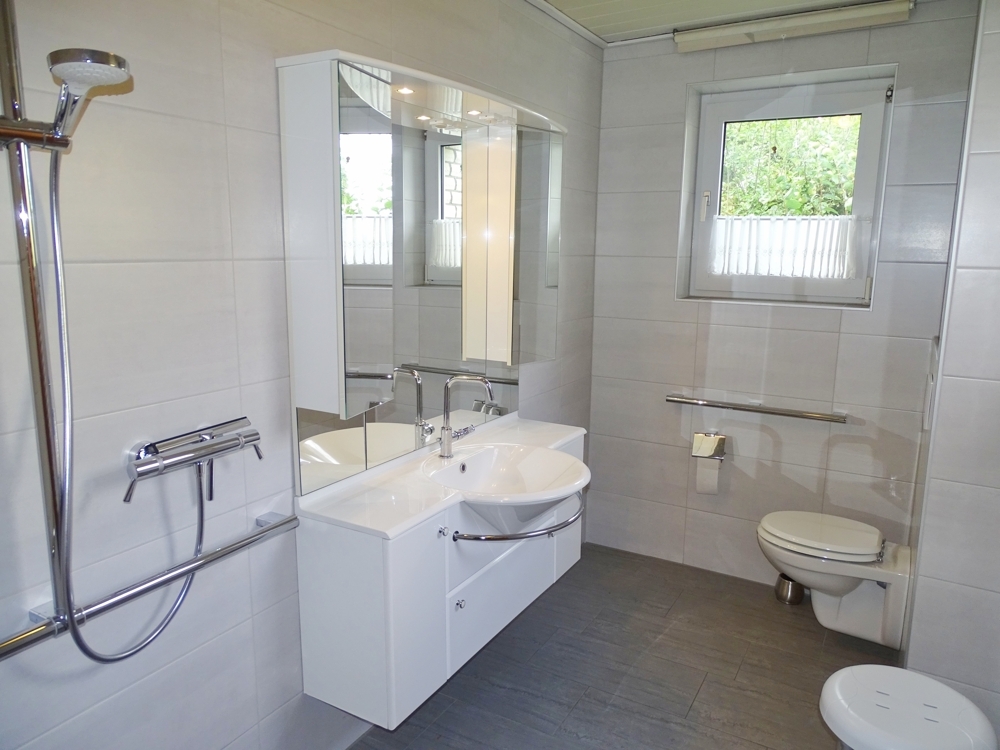 Das Bad wurde 2018 seniorengerecht, mit bodengleicher Dusche erneuert.