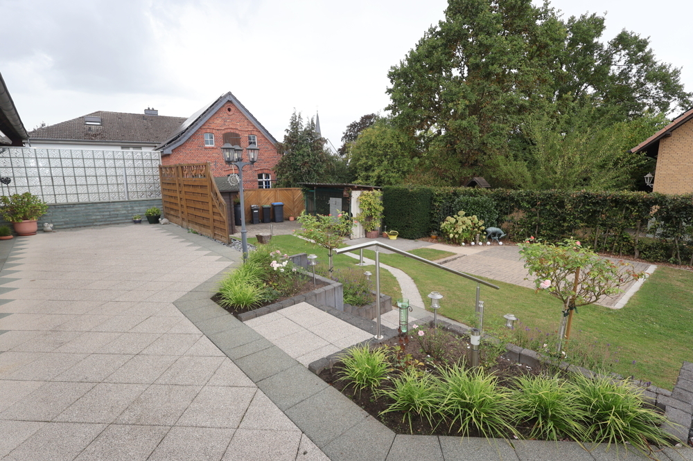 Die Lage des Hauses ist perfekt für Familien. In unmittelbarer Nähe befinden sich mehrere Kindergärten, darunter der St. Ida-Kindergarten und die KiTa Wiesenhüpfer. Eine Schule ist ebenfalls nur einen kurzen Spaziergang entfernt. Für den täglichen Bedarf ist ein Supermarkt in der Nähe, und die Anbindung an den öffentlichen Nahverkehr ist hervorragend, mit mehreren Bushaltestellen in der Umgebung.