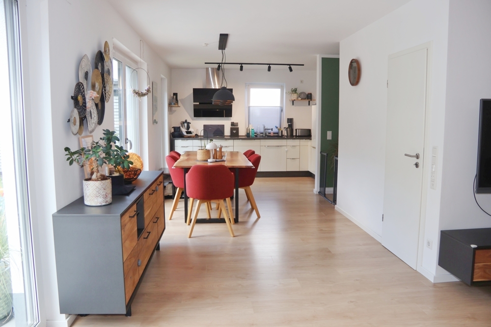 Das Herzstück ist sicherlich der großzügige Innenraum im Erdgeschoss, mit einem offenen Koch-/Wohn- und Essbereich.